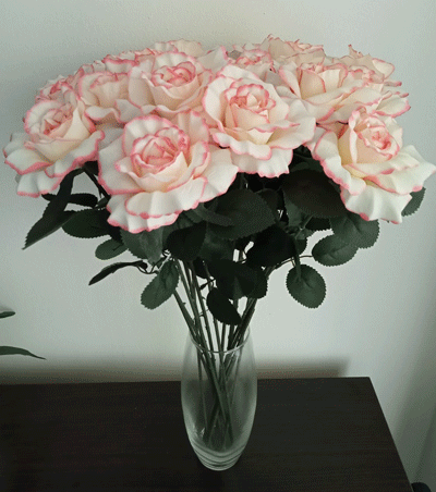 Пелюстки мають м’яку текстуру, природну форму та глибокі відтінки, що створюють ефект живої троянди. Ідеально підходить для декору ресторанів, салонів, шоурумів, а також домашнього простору.